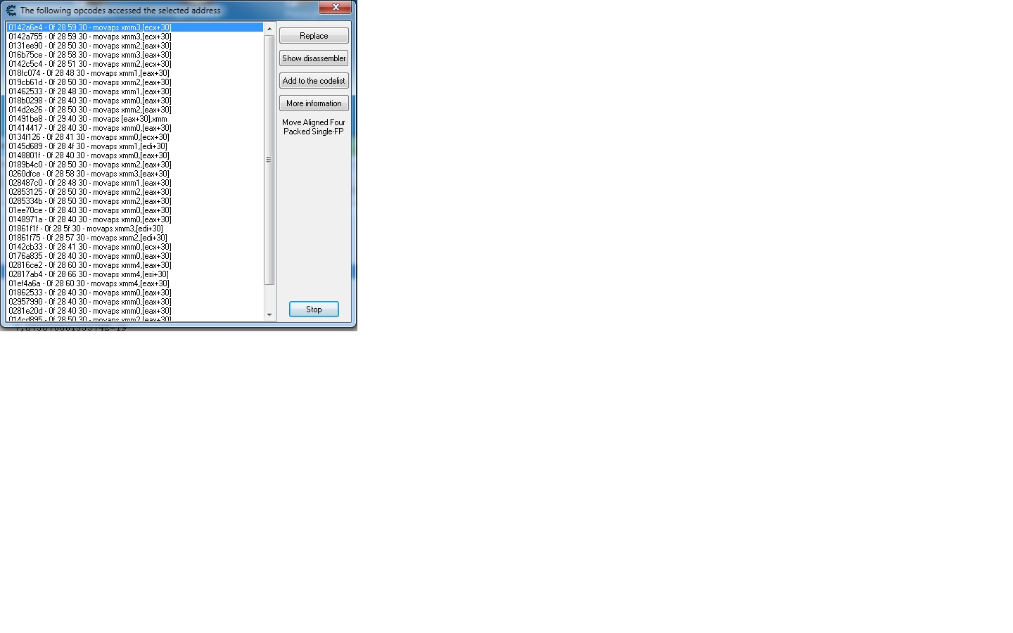 Yep... As DNA said - TSearch doesn't know the opcode MOVAPS.