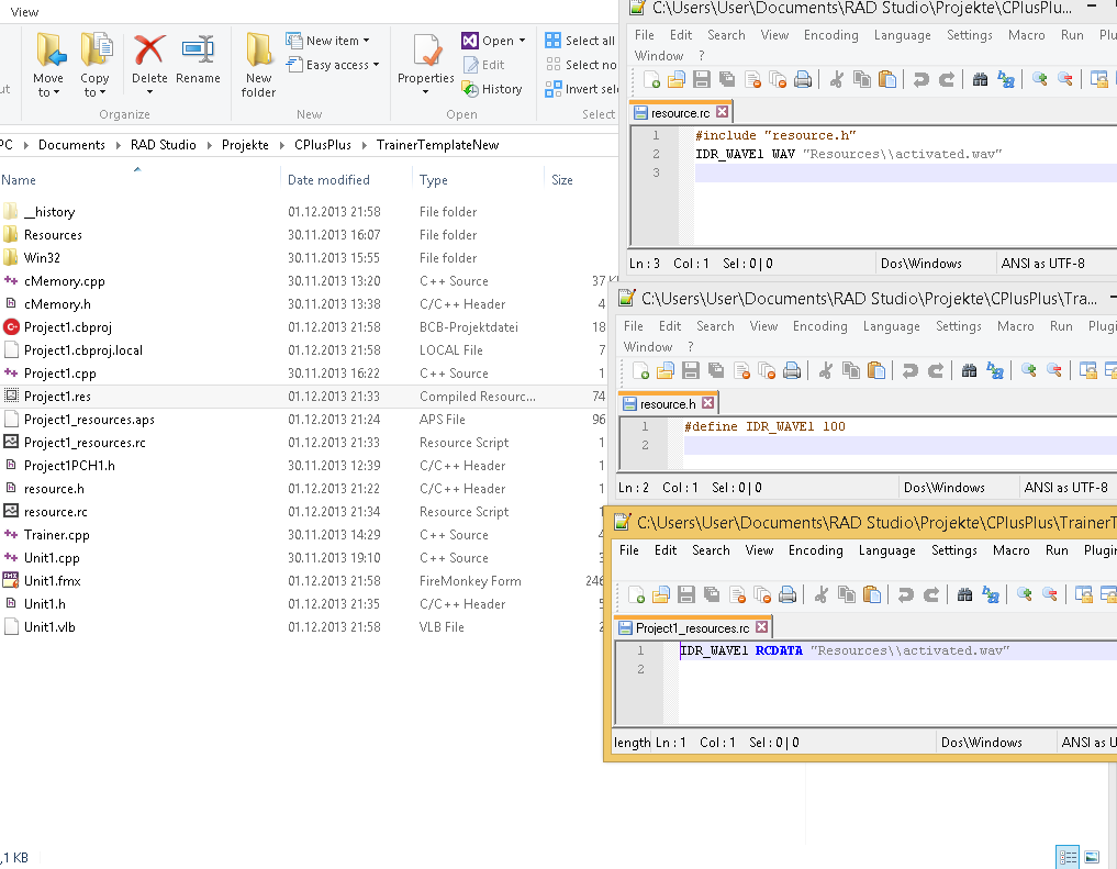 Ist das denn richtig, dass ich die "resource.h" und die "resource.rc" manuell erstellen muss? Denn nachdem ich die WAV einbinde taucht diese zwar im Solution Explorer (also im TreeView) auf, aber sonst nichts weiter.