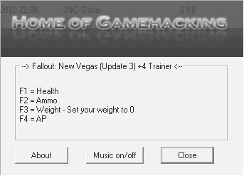 hier der geupdatete Trainer für Fallout: New Vegas. Dieser sollte für das Update 3 funktionieren.